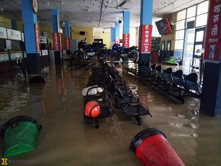Nepal Electricity Authority, Regional substation made to distribute electricity to the district drowns, leading to complete power blackout in the district.
