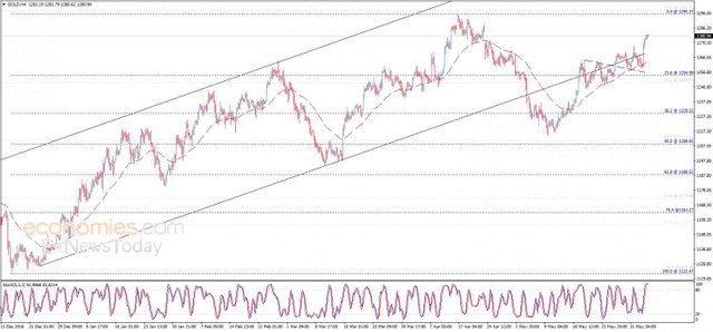 Gold price settles within tight range since morning near 1280.00 level, and the price keeps its stability above the bullish channel’s support that appears in the above chart, while the EMA50 keeps providing positive support for the price.