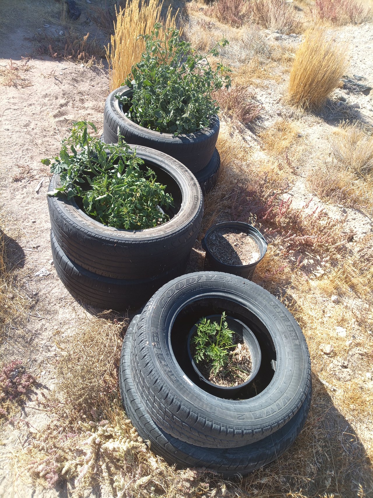 I carried the second one, heavier. Twice as much and the plants are near three feet tall. Where the other pot, the tomatoes died during the drought but somehow magically regrew from what appeared to be dead, rotted stems once the rain and brought water with which to water them. Yes, they came back to life and even have small tomatoes that are green. The only plants that lived through the drought besides one asparagus plant, and a couple of onions. As in two onions of hundreds.