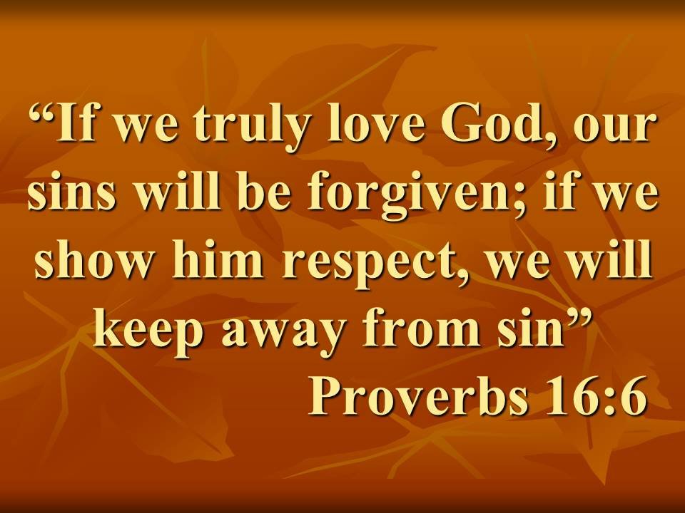 Bible quote: If we truly love God, our sins will be forgiven; if we show him respect, we will keep away from sin. Proverbs 16:6