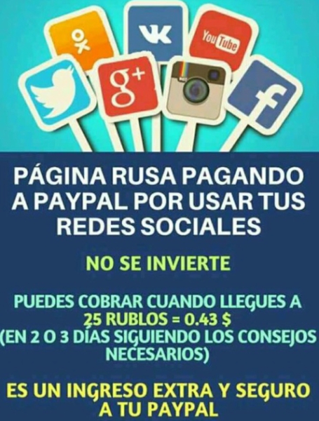 Pagina Rusa Pagando a Paypal solo por usar tus redes sociales
