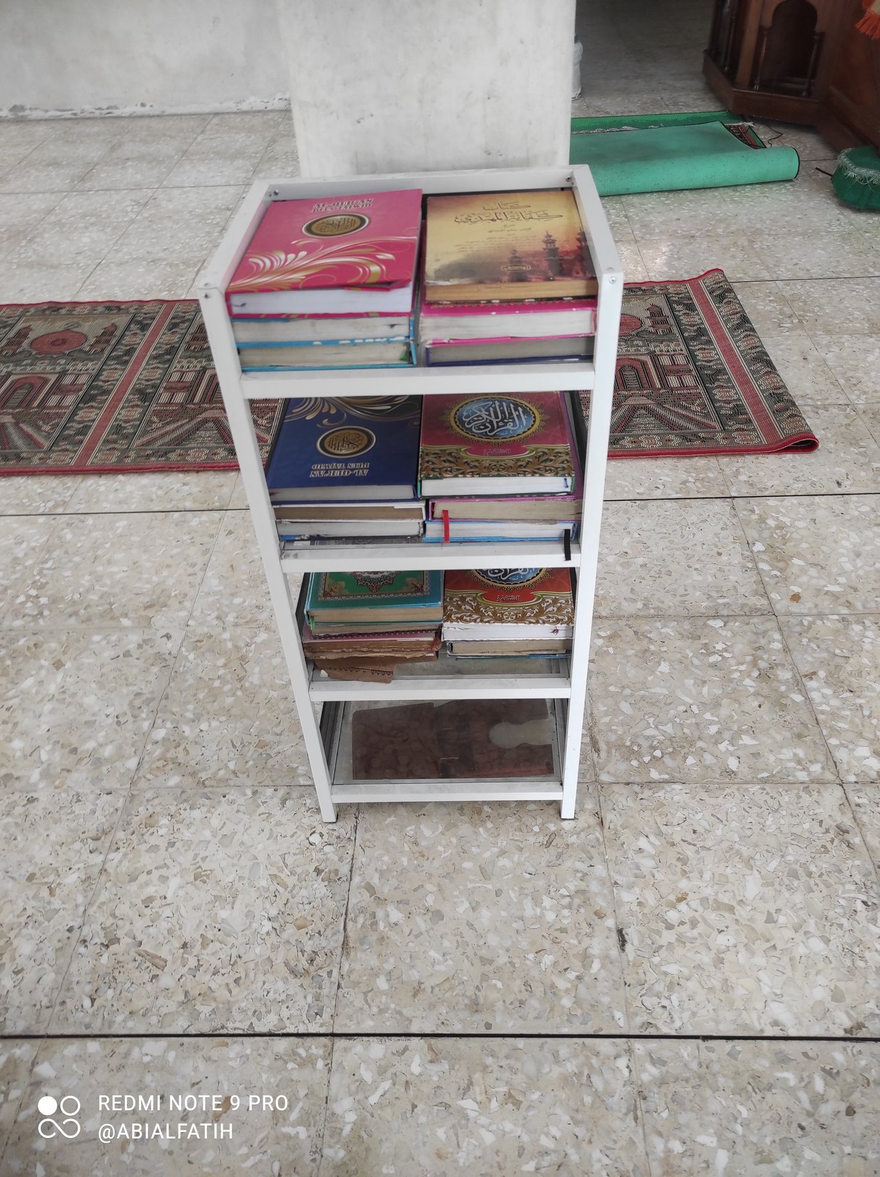 Terdapat lemari kecil atau rak di belakang masjid yang menyimpan Alquran untuk dibaca oleh para jamaah, demikian juga terdapat kotak amal bagi warga yang ingin bersedekah membantu pembangunan Masjjd, juga terdapat mukena bagi jamaah wanita dan juga tirai pembatas bagi jamaah wanita yang ingin shalat di Masjid, juga terdapat sebuah balai bagi para pelintas yang ingin beristirahat khususnya wanita dan anak-anak yang mungkin saja tidak boleh masuk masjid karena sedang berhalangan bisa memanfaatkan Balai tersebut.