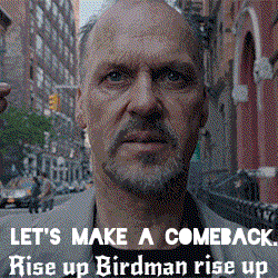 Weekly Movie GİF Contest #21mkucukbekmez (-2)(1)in #movie-gif • 8 years ago Let's make a comeback.You are Birdman. RİSE UP BİRDMAN. RİSE UP ! #contest #birdman #busy