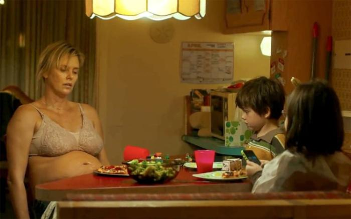 Marlo (Theron) is not your atypical mom. She is a bit overwhelmed with two children and one on the way. She has an elementary school aged daughter, Emmy (Maddie Dixon-Poirier) and a son in kindergarten. Her son, Jonah (Asher Miles Fallica) has special needs, but is not diagnosed with anything specific. Her husband Drew (Ron Livingston) helps out, but is largely tuned out to the stresses of her daily life. Marlo has a wealthy brother, Craig (Mark Duplass), who tries to help out by offering to pay for a night nanny. Marlo is opposed to the idea, but takes a post-it note with the phone number on it and tosses it mindlessly into her purse. She has no intention of calling.
