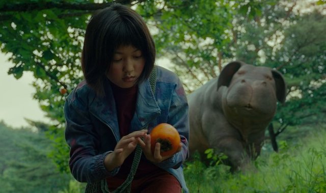 Despite Okja's massive size, she (i think it was female) is an incredibly docile creature. Okja and the young girl (named Mija and is brilliantly played by the wonderfully talented Ahn Seo-hyun) seem to share a very special bond. Okja is more than capable of crushing those that would do her harm, but because of her gentle upbringing by Miju, the creature doesn't seem to be at all prone to violence.