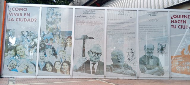 Esta impresión con imágenes y pensamientos de arquitectos venezolanos a la entrada del museo invita a pensar en la ciudad como una creación de los profesionales y la comunidad