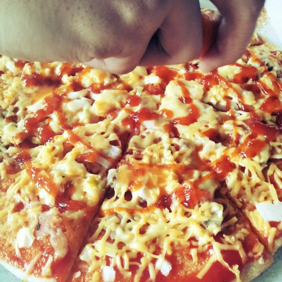 All we need is LOVE, it is not important if your pizza is not expensive one or you buy it at the food cart near by along the street. Hapiness and being contented is the best feeling than buy expensive pizza but your heart full of sadness and hate. Food becomes delicious when eating together with our love ones. Be simple and happy.