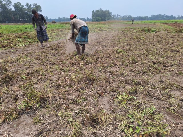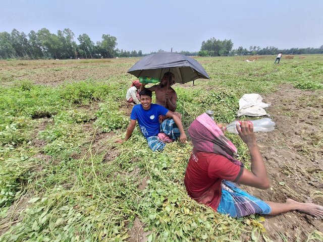 After harvesting the nuts, we have to work the hardest. These nuts have to be dried for three days if there is proper sunlight. Although it is difficult to work in the sun, we expect the highest temperature at that time. We have to dry them regularly in the sun and remove the soil from the almond trees every day. The picture shows how much hard work it is.