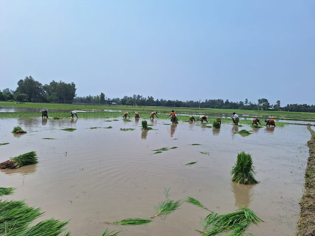Later, rice seedlings are being planted in that land. Although we do all the work before planting rice seedlings ourselves, we need workers to plant the seedlings. We give the workers a contract according to the amount of land for planting seedlings, and they lift the seedlings from our land and sow them in the prepared land. After harvesting one crop, sowing another crop and taking care of that crop is the main goal of farmers like us.