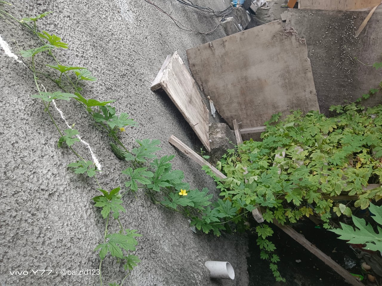 I took these photos from our own small vegetable garden and in Malaysia, we cultivate these plants in our free time besides work and this small garden is a great blessing for us amidst the hustle and bustle of the city and when I come here and sit for a while, I feel like I have returned to my own country and the picture shows the flowers of the bitter gourd tree. The small yellow flowers enhance the beauty of nature. The small bitter gourd tip is also visible next to the flowers, and it fills my heart because when the fruit and flowers come from the tree planted by my own hands, the joy is truly different.