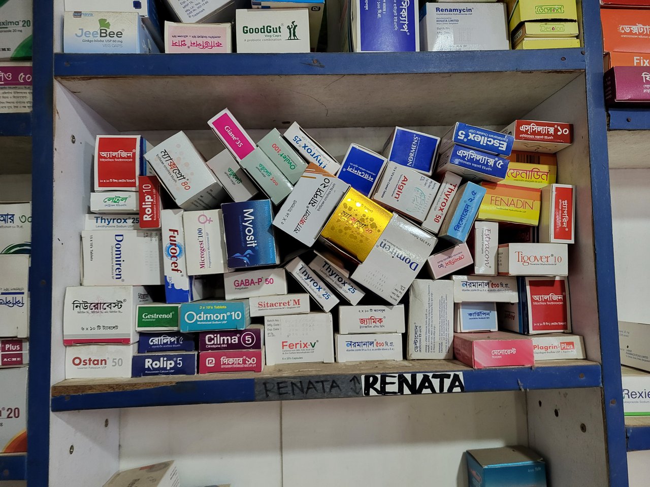 The owner of the shop himself is not a doctor, so there is no chamber here, no doctor sees patients, only medicines are sold through prescription from this pharmacy. There are other pharmacies next to it which are reputable and there are at least three to four pharmacies in this spot of Bamundi Bazar alone which are not found anywhere else in the market.