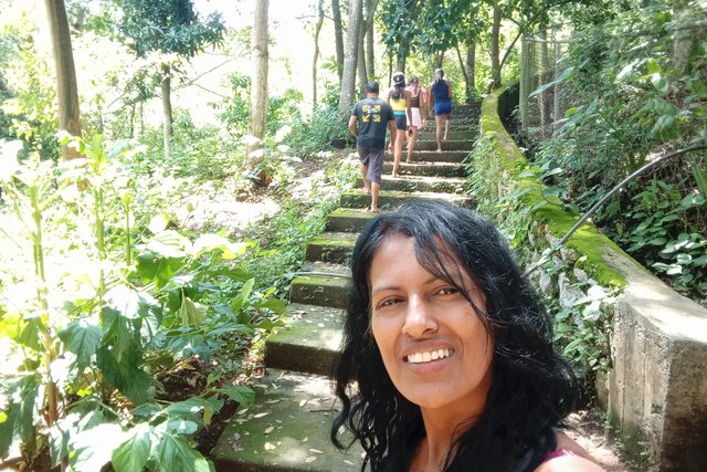 Y para ser aún más placentero mi momento con este entorno, subimos a una montaña, y aunque la caminata fue un gran desafío por la cantidad de escalones que tuvimos que subir, puedo decir que este desafío fue gratificante, porque estaba rodeada de árboles, flores, y de algunas aves que habitan en el lugar