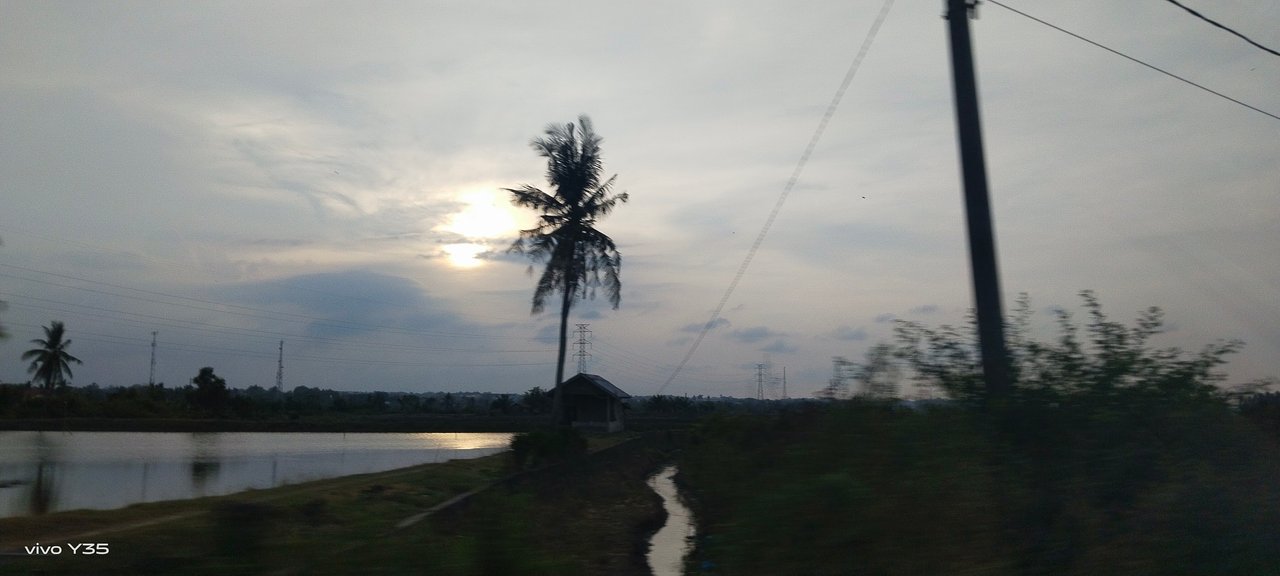 MESKI direkam tidak secara serius, lantaran sambil mengendarai mobil. Ditambah lagi tidak terlalu fokus, karena dia,bil dengan kamera ponsel, namun foto ini tetap mampu menangkap ketenangan senja di sebuah pedesaan yang saya lintasi. Waktu itu, matahari yang tersembunyi di balik awan memancarkan cahaya keemasan yang lembut, menerangi langit yang luas.