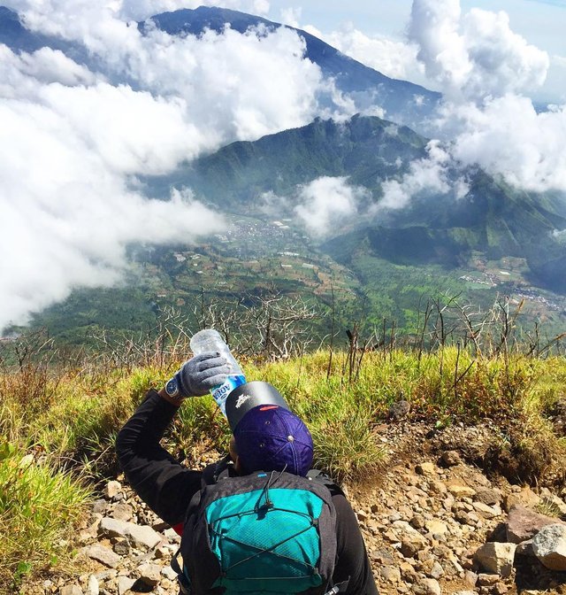 Jangan lihat-lihat kebawah, masih jauh! Mending minum biar gak haus😁 #nature #life #mountain #bukanendorse #share2steem