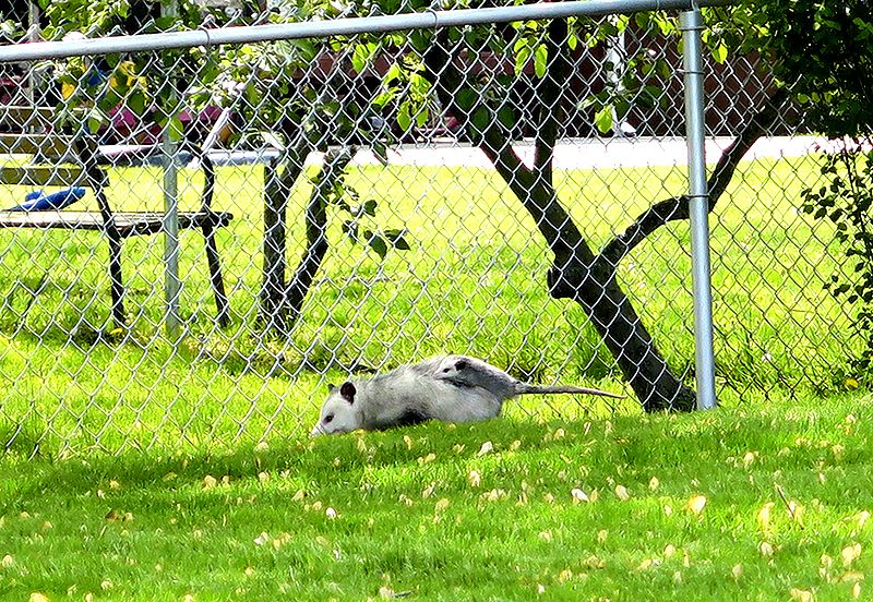 I'm originally from Ohio, seeing Possum at night rummaging through trash or crawling out of sewers is a regular occurrence. I was spending the day with my husbands family, enjoying some time outside when I saw this mother Possum scurrying across the yard in broad daylight!