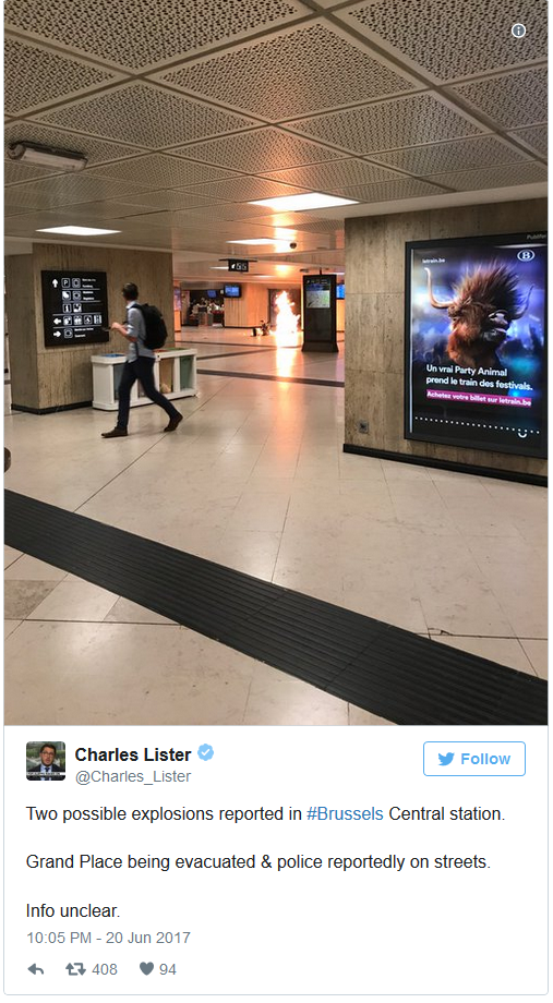 Two possible explosions reported in #Brussels Central station.