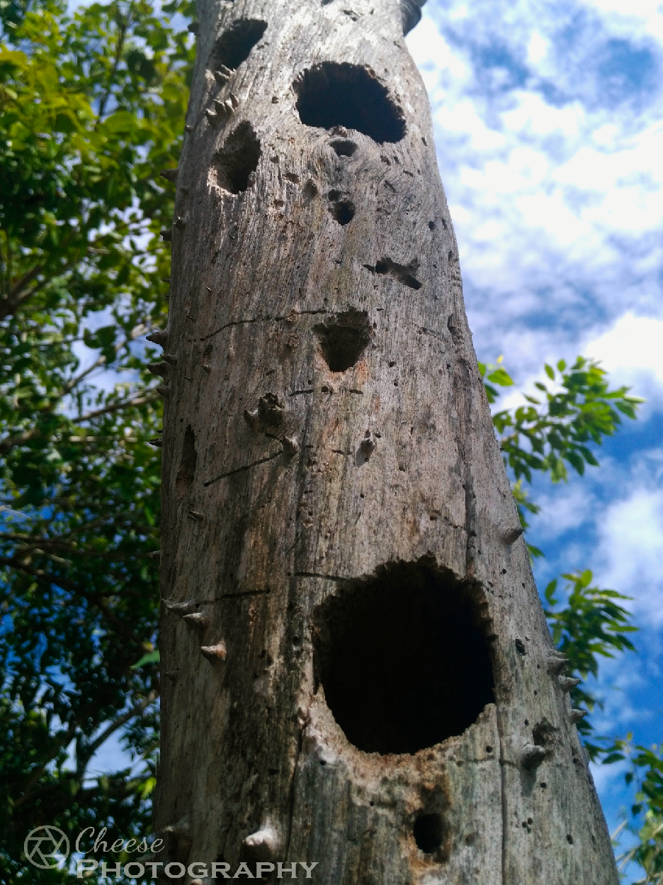 Me encanta tu fotografía, está espectacular tu árbol que está en tu jardín y estos agujeros que suelen servir de refugios para esos pequeños animalitos .Te felicito por tu arte, muy buena captura y muy nítida. Bienvenido y mucho Saludos.