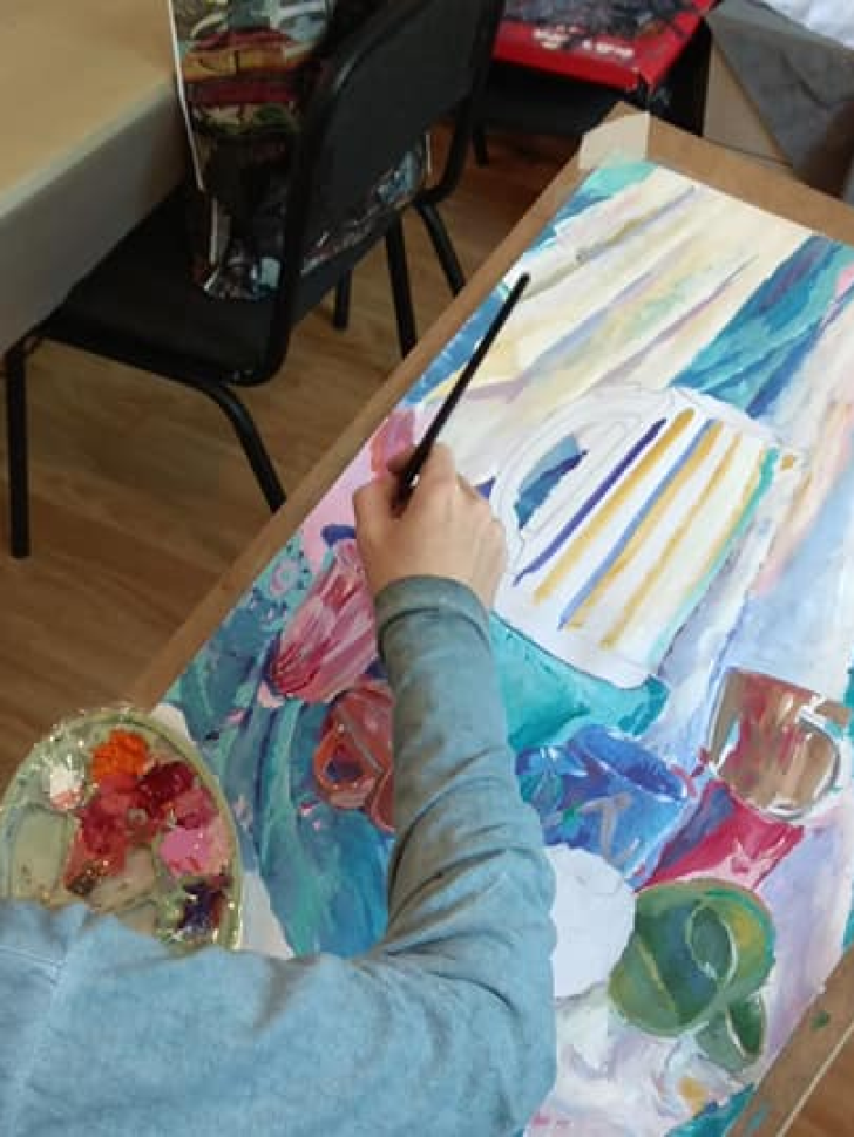 Gosh, he has only been attending your art centre for a year and he is already so good with his gouache! His still life is really wonderful ! He understands light and colours so naturally ! I am absolutely impressed by Denis ! A terrific talent ! I hope he will cultivate his talents in art more and more in the future, as well <3