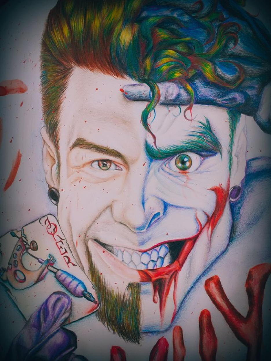 Exactly! In fact, his name is Andrew and he works in the tattoo-salon "Joker". He is a big fan of Joker, if you already understand this. And I decided to give him a birthday gift in the form of an unusual portrait. I drew ordinary colored pencils. I think it turned out bright and original. 🎨🤔