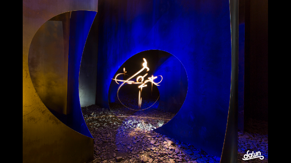Lightpainting created in real time, captured to the camera in one single photographic frame.