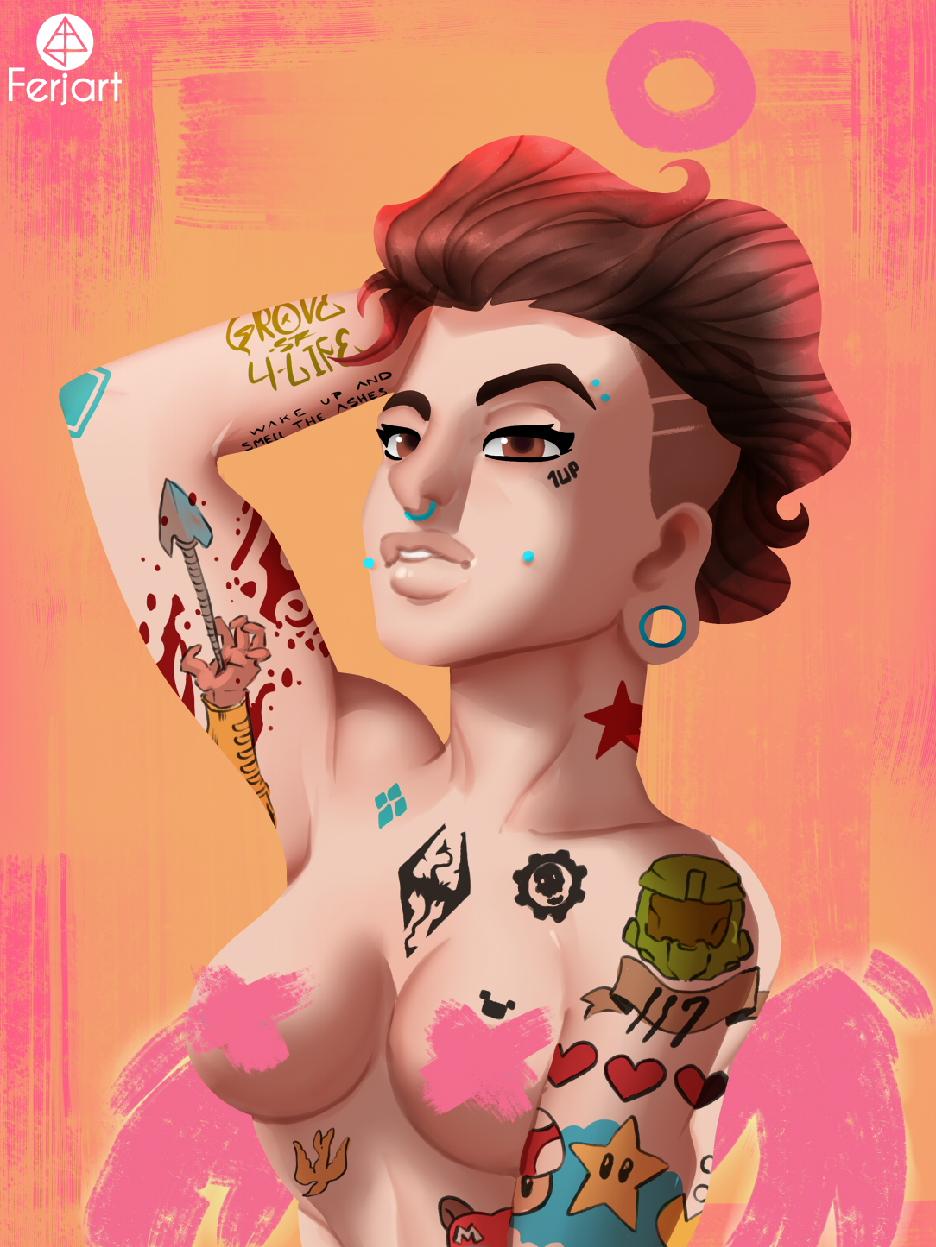 What a fabulous and extremely sexy portrait, @ferjart! I love the tattoos. So cute and funny!