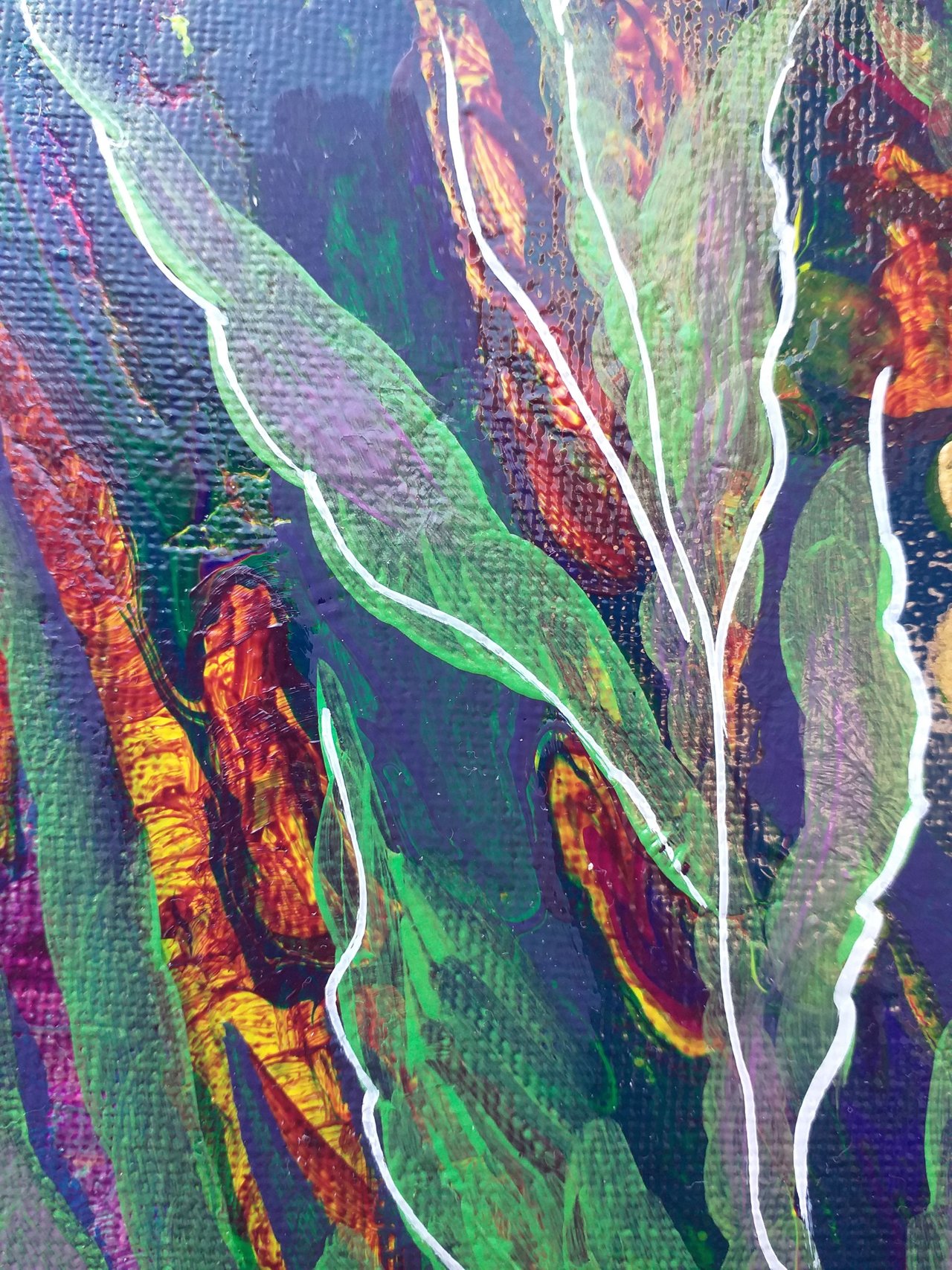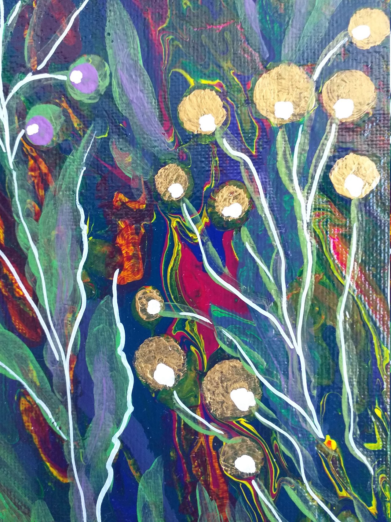 The wonders of acrylic, you can always put more (right away) when you don't feel satisfied with the work. The end result is fantastic. I can see you're relaxed when you did this.. or that's how I feel :D To me, it speaks about curiosity, maybe because the plants look like growing eyes to me :D