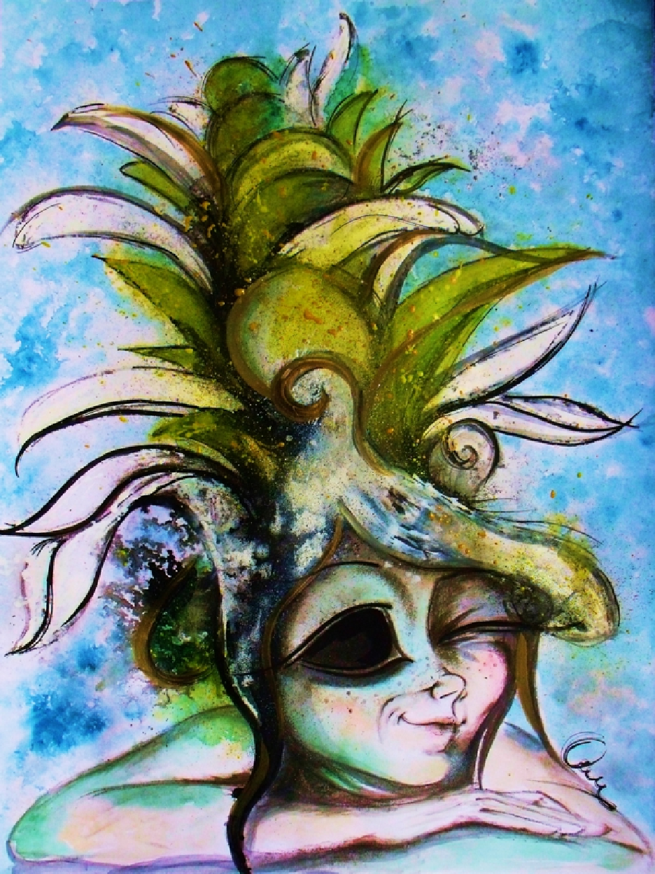 Beautiful illustration, like t he idea of matching the plants to certain character, you are very good in that.Thank you for this magical world of Botany :)