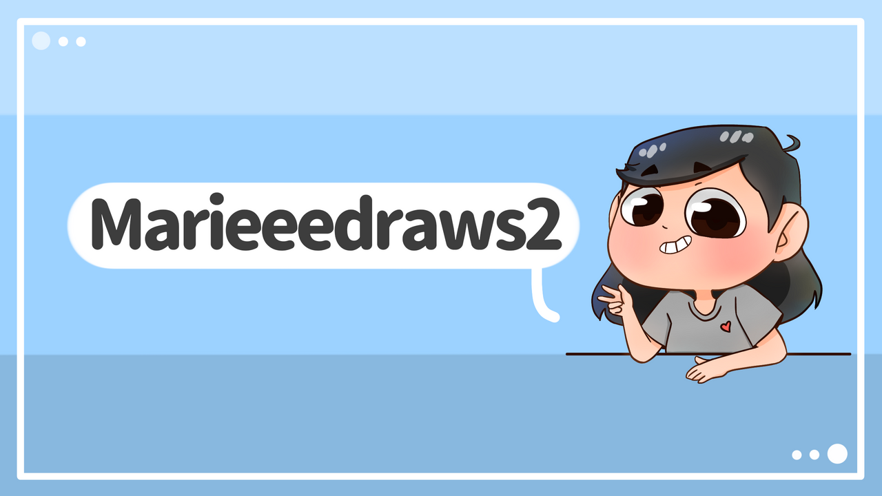 Blue background, the name Marieeedraws2, white border and Marie on the side! A simple design that I pretty much like hehe