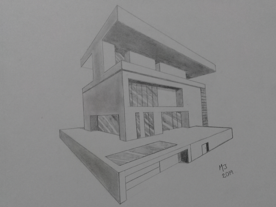 Greetings my dear friends! This time I depicted a Modern House in a very architectural sort of way, with the help of some technical drawing techniques and some perspective points. From my point of view, elaborating a concept like this is a very good anti-stressful way to relax yourself from a long day of work. In real life such a house design would be quite inefficient but, when it comes to giving your mind a time to be creative, such considerations can be skipped.
