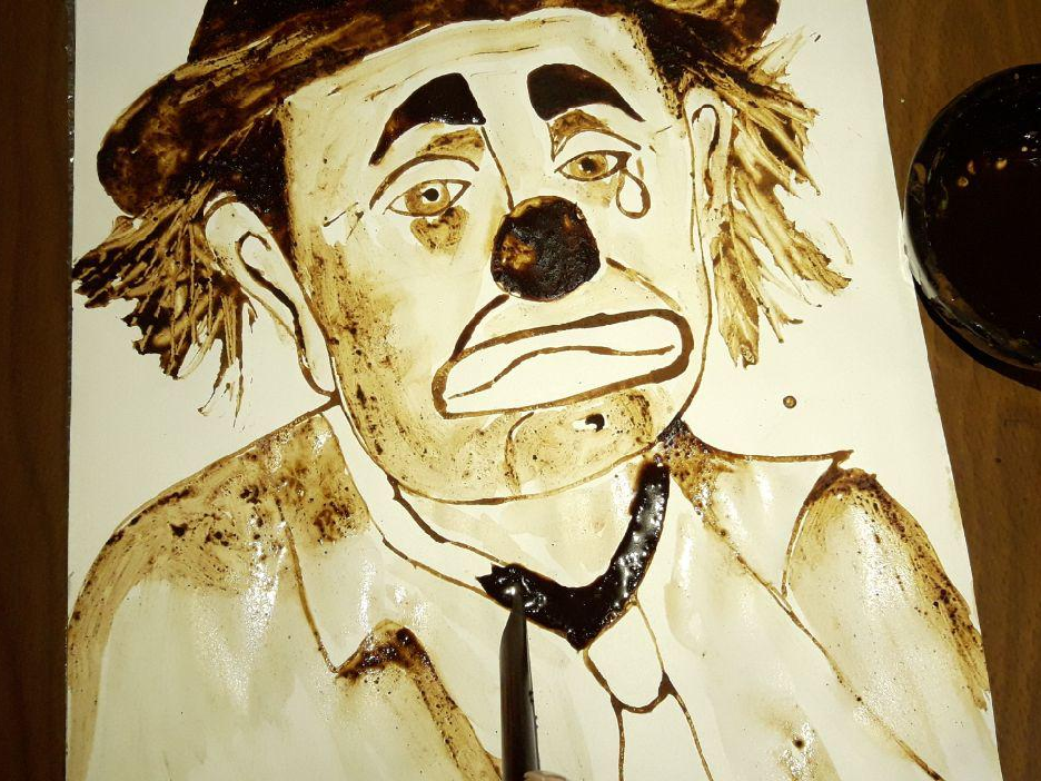 [CR]Sad clown/painting whit coffeemarya77 (70)in #ntopaz • 6 years ago Hello friends You will see the process of painting with coffee Step by step . Join marya to see more videos. Thanks for watching this painting Hope you like it. #art #creativecoin #neoxian #palnet