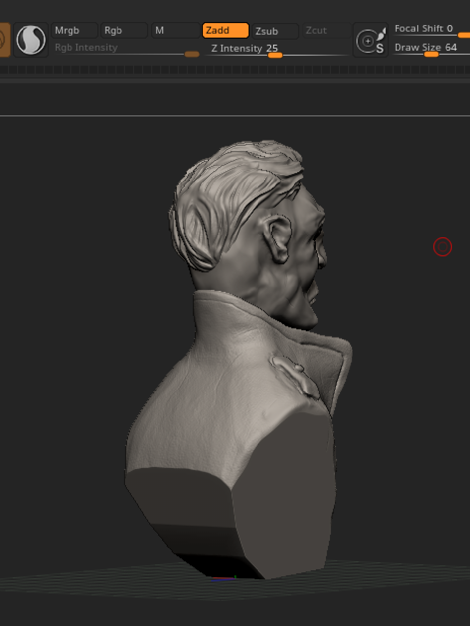 An interesting sculpt, @mrgreen, he looks like a character in a story, with maybe a difficult path before him, because his face looks serious and full with concerns... I like it :) Is this your first sculpt with Zbrush? You look like you're getting to know it very well even with your first attempt! :)