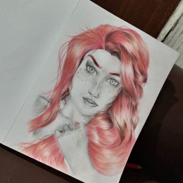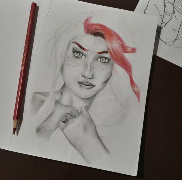 in the picture below I color the part of the skin or body with the natural color of the pencil powder, this is made so that the image is more alive when viewed.