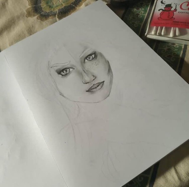 The first stage in drawing, all the drawers will know, starting with the face first, make sure you draw it with a pencil that is slightly faded, so if something goes wrong it's easier to erase it.