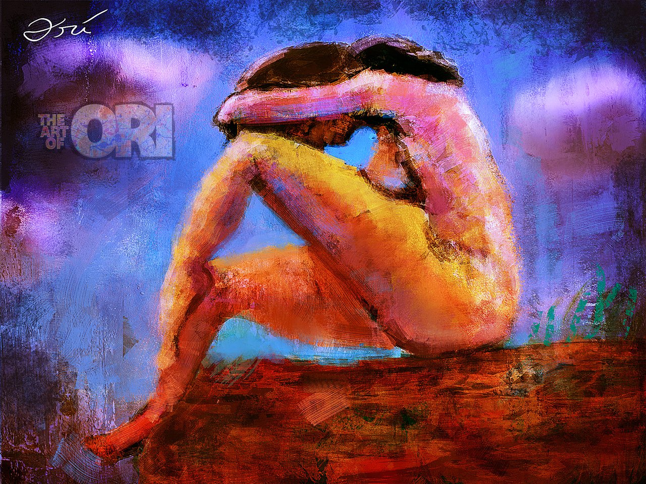 I was going to paint a pin-up nude, but thought I'd work on conveying emotion through body-language.