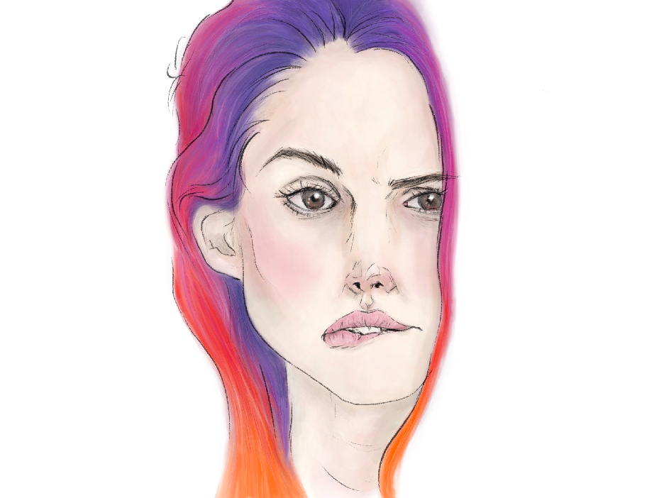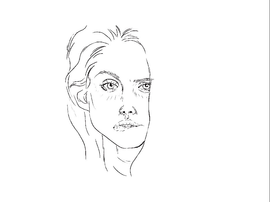 I began inking a rough outline of the original drawing using the reed brush. I made a few slight adjustments to her expression, most of the details are probably only things I’d notice (except for the hair). Her nose is slightly different because of the way I decided to shade it, the tail of her brows are more defined as well as the corners of her eyes. I began to loosely texture and shade the hair, keeping things light and feathery. I did some crosshatching for shadows and then added thicker lines in certain areas to keep the image balanced. That way, if it’s in thumbnail form, you’re still able to make out key features.