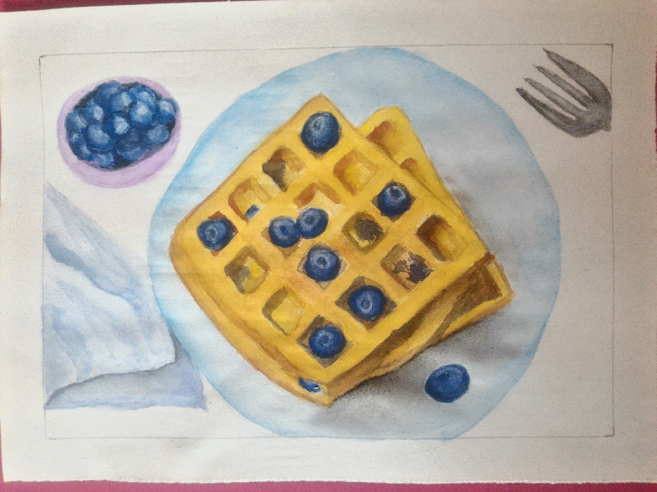 Finally, I painted the background with a light ashy coffee colour. I used some black again to create some shadows especially around the plate and cloth. I painted the background and almost all the other details light because I wanted the waffles and blueberries to stand out. This is the final outcome. I hope that you enjoyed reading and find some of the things I have written helpful. Thank you for dropping by and have a great day ahead =)