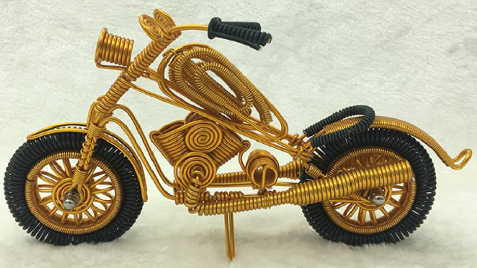 스프링만을 이용해서 모터사이클을 수작업 했다니 놀라울 뿐입니다. 바퀴는 색구분 하여 금색으로 일체시킨거 보다 훨씬 보기 좋네요.엔진 부분은 아주 섬세하게 마무리 하신듯 장식용으로 쓰기에는 훌륭한 작품입니다.