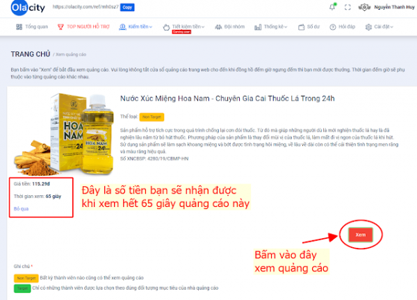 Chi tiết cách kiếm tiền miễn phí khi xem quảng cáo Ola City