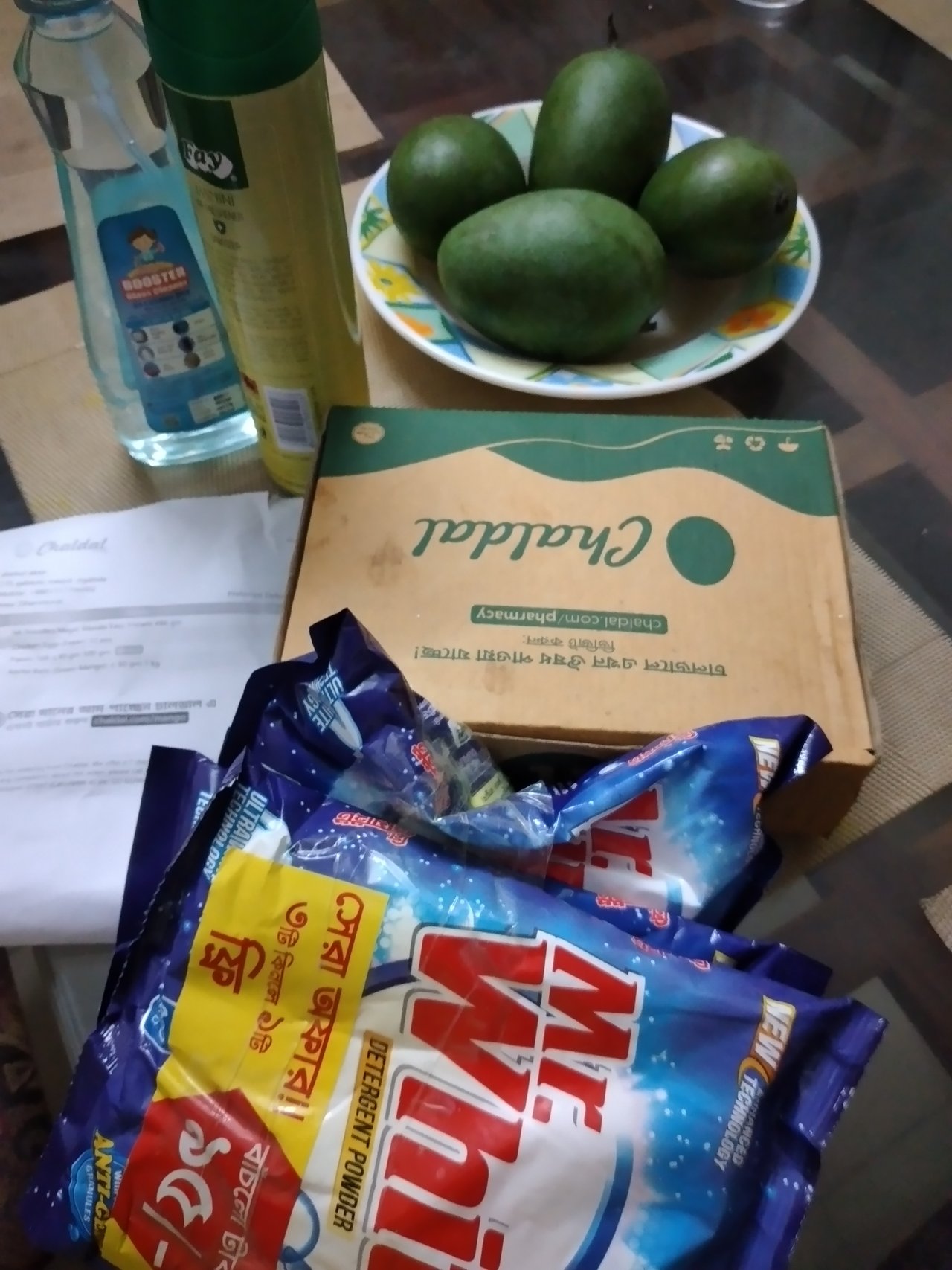 বন্ধুরা,আজকে আমার ব্লগের টাইটেল পড়ে বেশ বুঝতে পেরেছেন আমার আজকের ব্লগটি কি নিয়ে লেখা।ঠিক ধরেছেন পাকা আমের মৌসুমে কাঁচা আমের খোঁজে চালডালে অনলাইন কেনাকাটা করেছি তাই আজ আপনাদের মাঝে শেয়ার করতে চলে এসেছি।বন্ধুরা,আমি পুরোপুরি না হলেও বেশীর ভাগই অনলাইন কেনাকাটায় অভ্যস্থ।কেননা,আমি ভীড়,হৈচৈ খুব কম পছন্দ করি।আর প্রায় অনেক দিন থেকেই চালডালে কেনাকাটা করি।করোনা চলাকালীন সময় আমি এই চালডাল অনলাইন শপিং থেকেই কেনাকাটা করেছি।প্রায় এই এক বছর কিছু আনা হচ্ছে না চালডাল থেকে।কারন আমার বাসার কাছেই দোকান, সেখানে লিস্ট দিয়ে দিলে ওরা এসেই সব দিয়ে যায়। তাই এক বছর ধরে চালডাল অনলাইন শপিং আমার করা হয় না।চালডাল থেকে প্রায়ই ফোন দেয়।ফোন দিয়ে জানায় আমার জন্য কি কি অফার আছে এসব আর কি ।আপনারা জানেন আমি সেদিন স্বপ্ন সুপার শপে গিয়েছিলাম।সেখানে কেনাকাটার ফাঁকে আমি কিন্তু সেখানে কাঁচা আমের সন্ধান ও করেছিলাম।কিন্তু কাঁচা আম পাইনি।