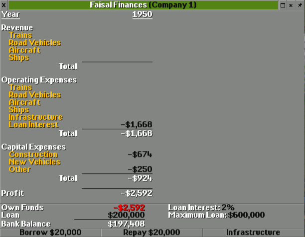 I started game in 1950 and it took me around 8 years to earn and repay all the loan and got some money for me. Now my vehicles and everything is under my possession and they are working and continuously working for me and making profit.