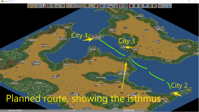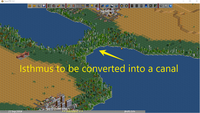 Cuando vi el mapa del nuevo juego, enseguida me fijé en el istmo que separaba esas dos masas de agua. Mi deseo se fue allí, tenía que abrir un paso para ampliar las rutas de navegación. Arriba, mostré cómo construí el canal. |