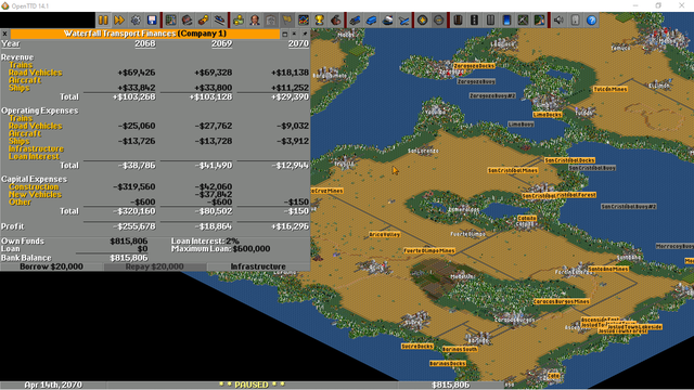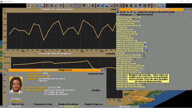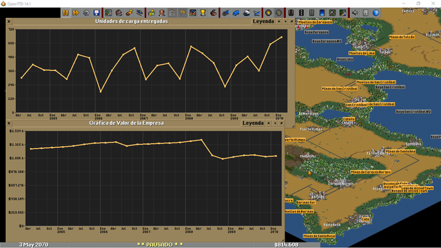 REFLEXIÓN: Parcticamente lo escrito arriba, me lleva pensar, que en este mapa y en estas circunstancias el mejor rendimeiento se obtiene de los vehiculos terrestres que he manejado, camiones de carga y autobuses. Voy a estudiar la manera de hacer más rentables los barcos y eso igualmente dependera bastante de la infraestructura en tierra como carretera y estaciones. |