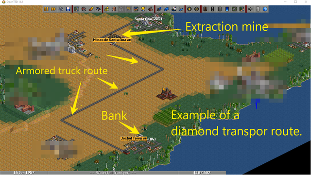 Leyenda: - Imagen 1. --- Ejemplo de una ruta de transporte de diamantes - Imagen 2. --- Compra del camión blindado.