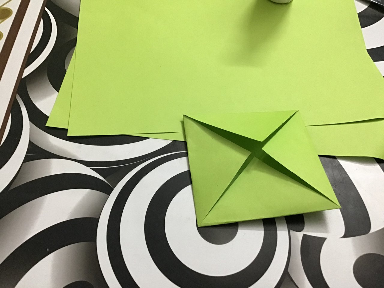 এরপর কাগজের টুকরোটিকে মাঝ বরাবর ভাঁজ করে নিয়ে ভাজটি খুলে নিলাম।এবার চার কোনা ভাজ করে নিলাম।