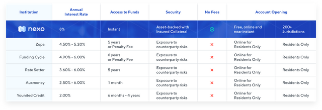 Ganar intereses con NEXO frente a las plataformas alternativas de préstamos