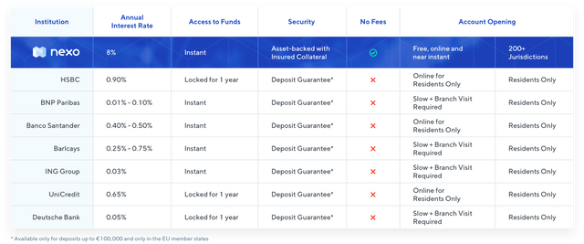 propuesta de valor de Nexo es de hasta 160x lo que los bancos tradicionales que ofrecen!