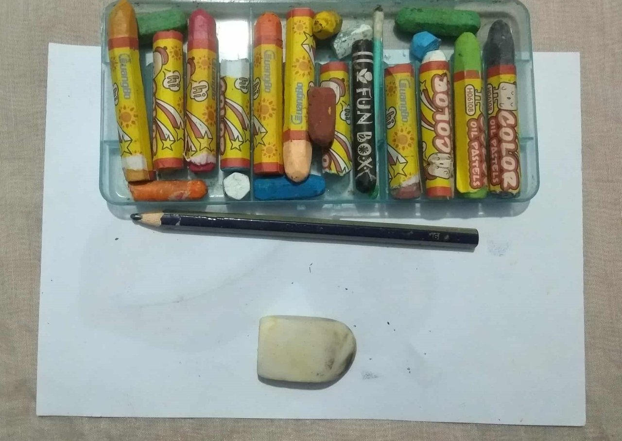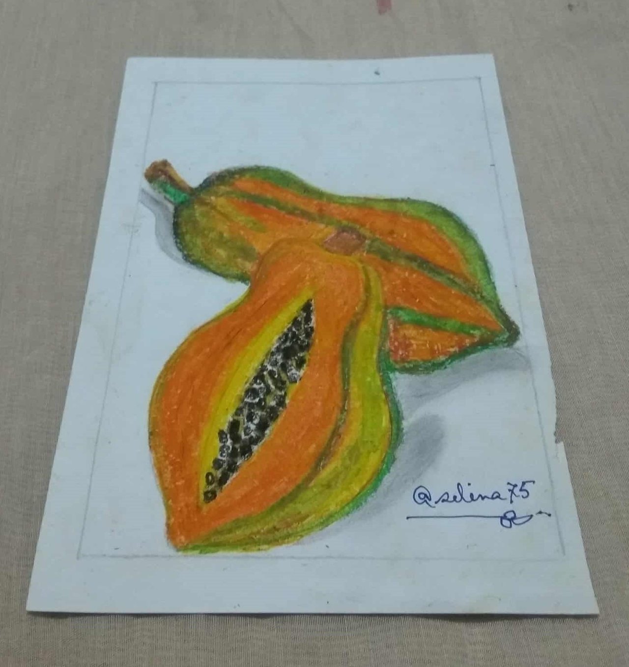 আর্টঃ মোম রং দিয়ে পেঁপে অঙ্কন।