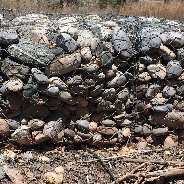 You will see Gambians - basically wire cages filled with stones and a few other treatments as well.