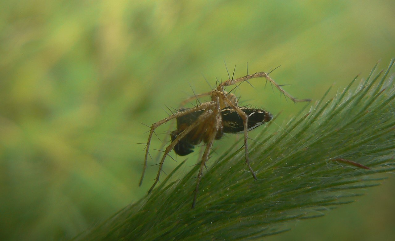 ... a spider ... in the silky shelter made on the ears of grass ... translucent in the morning sun...