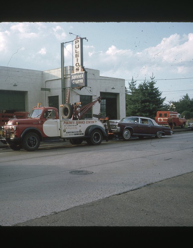 The last photo was processed in September 1968 and is another shot of a car being towed. There was a similar photo in another recent set. It's kind of nice because it gives an exact location. Puleio's Service Center was apparently on Livingston Avenue in New Brunswick, New Jersey. I saw was but I just looked it up and they are still in North Brunswick...with the same phone number. Their web page says they opened in 1963. I would e-mail them the photo but their website only has a phone number.